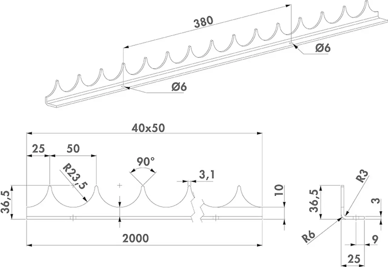 Betörésgátló szalag, tűzihorganyzott, felcsavarozható. Fésű hossza 1 m