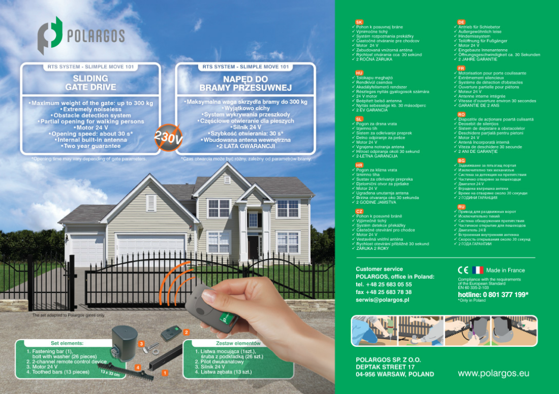 Kapu csúszó a készletben: belépőoszlop (7x7 cm), átmenő oszlop (7x7 cm), görgős, lengőkapu kocsi 2 db.