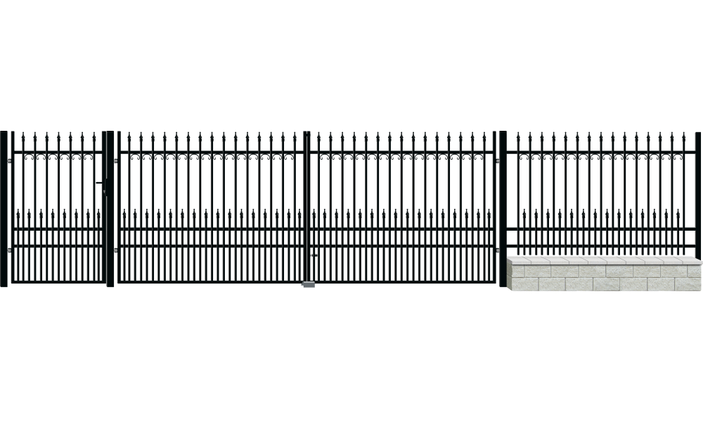 A kétszárnyú kapu a legklasszikusabb kaputípus, amelyet használhatunk ingatlanunkon. Elegáns, gyönyörűen fog kinézni a hosszabb autóúttal rendelkező telkeken, mert kell egy kis hely a szárnyak teljes kinyitásához.