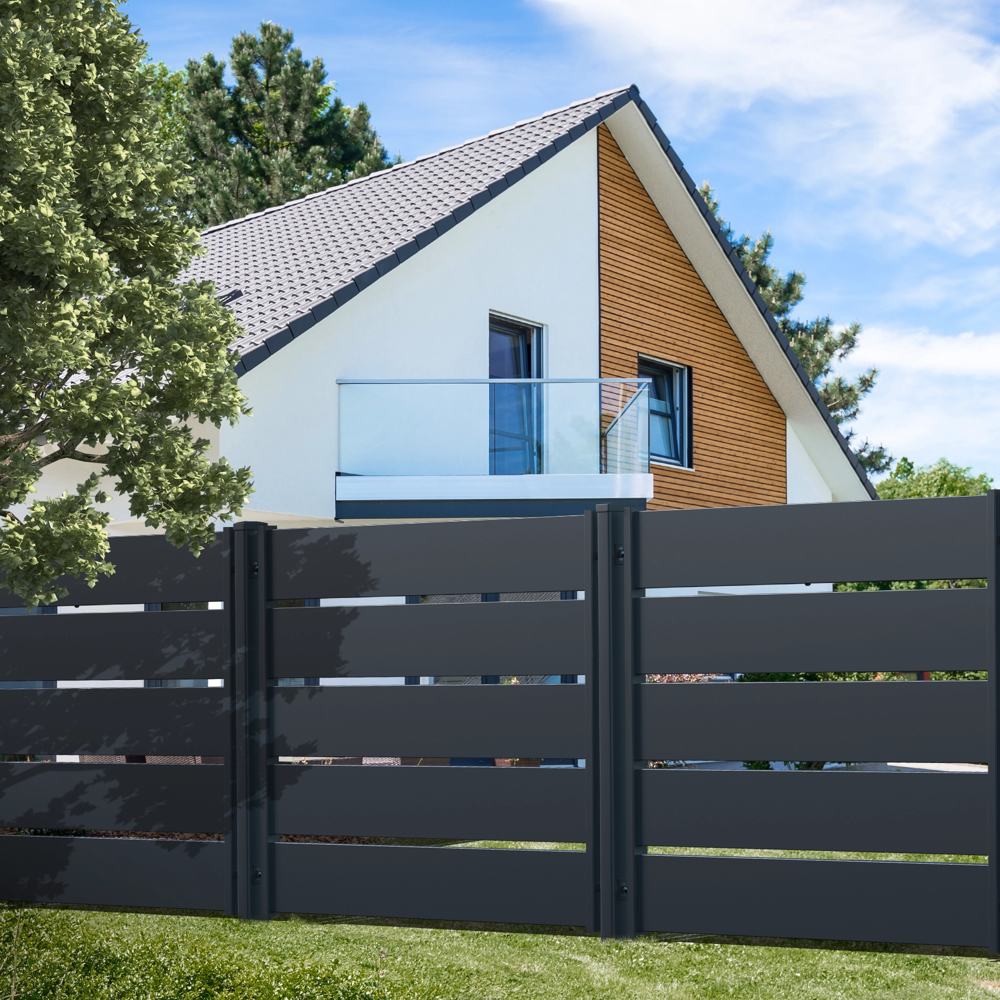 AzOpal egy kerítés széles vízszintes sínekkel, keskeny hézagokkal. Az Opál kerítés finom szerkezetű antracitfestékkel van festve, a termék horganyzással védett a korrózió ellen, kiválóan ellenáll az időjárási viszonyoknak és az elszíneződéseknek. A Polargos cég 5 év garanciát vállal az Opál kerítésre.