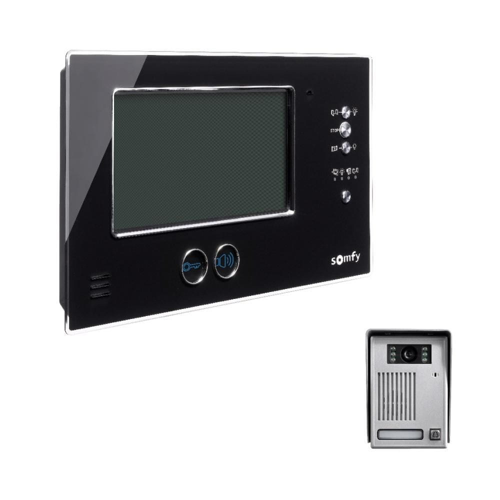 Kapu vagy kapunyitás a házból. Második monitor csatlakoztatásának lehetősége. Beépített rádiós monitor, 5 csatornás Somfy távirányító RTS eszközök vezérléséhez. A kültéri egység csatlakoztatása a monitorhoz 2-eres kábellel (a meglévő csengővezetékek használhatók).